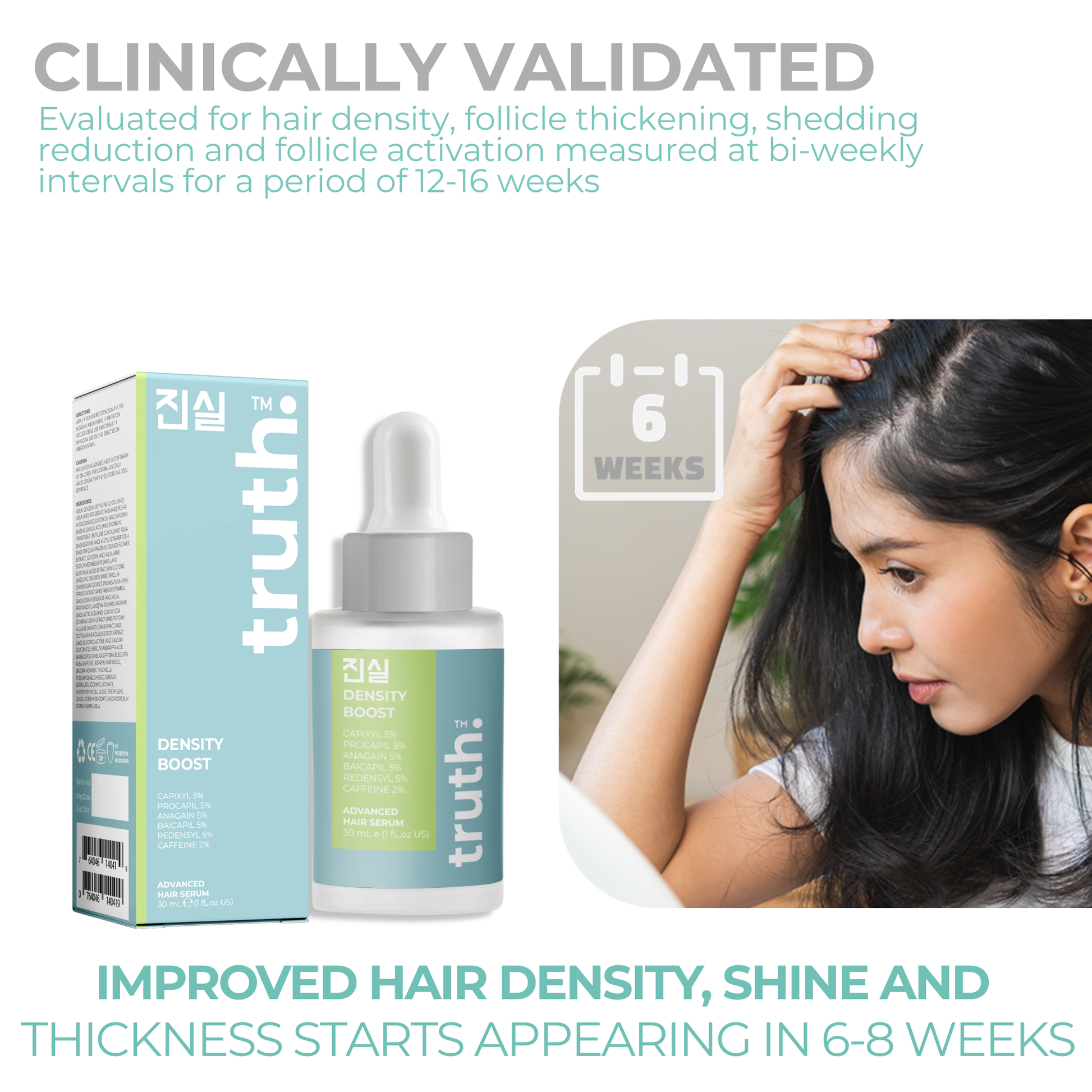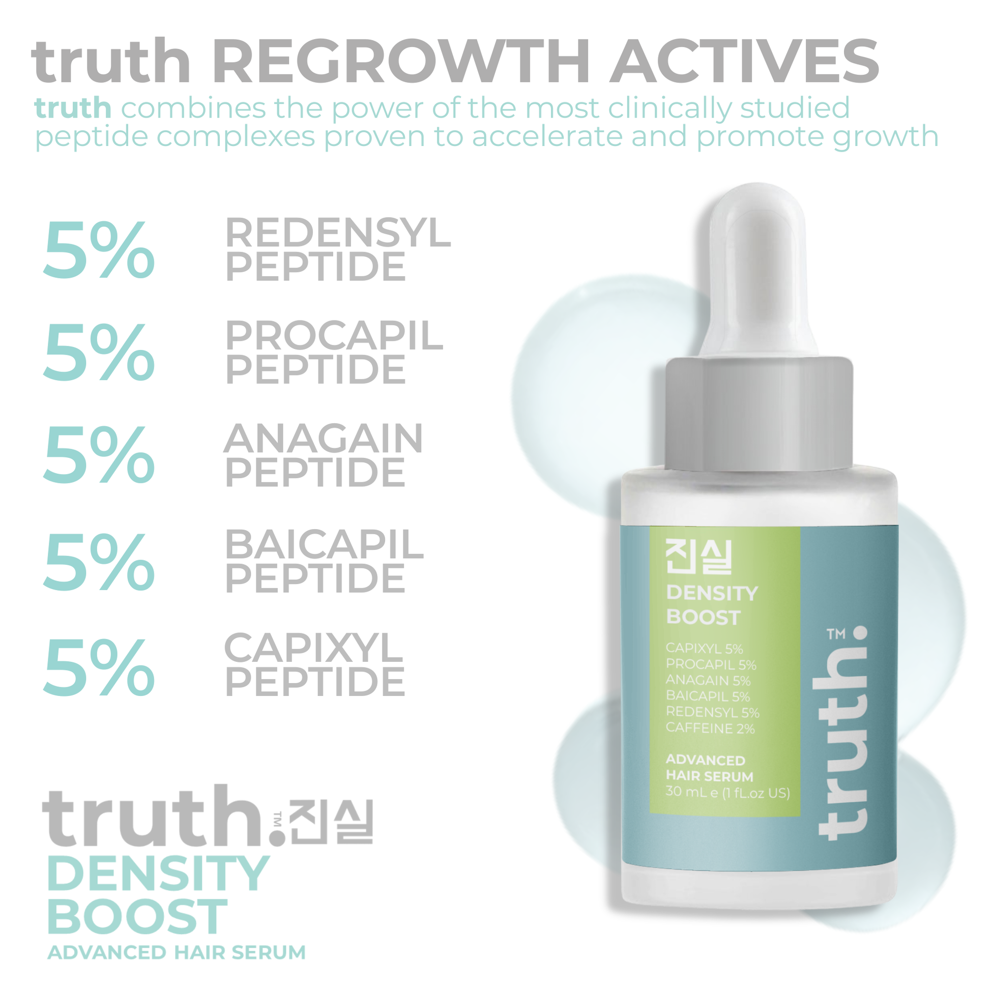 A concentrated yet lightweight leave-in formula power packed with the most advanced hair growth peptides, shine actives and natural extracts expertly designed to support the scalp and follicle health and give you thicker, denser, fuller-looking hair that shines.